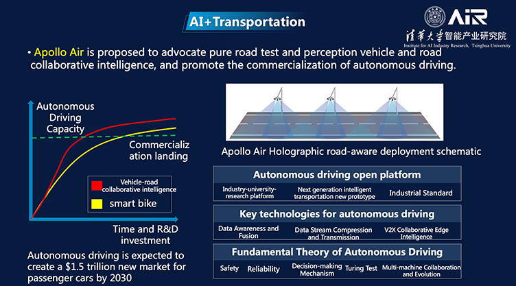 With the assistance of NMC, deep learning, reinforced learning, big data, cloud computing, IoT and other cutting-edge technologies, AIR's endeavors in AI+Transportation focus on self-driving, smart traffic network, and cooperative vehicle infrastructure, including: Building a integrated platform architecture combining branch technologies including holographic sensing, precise locating, autonomo...
