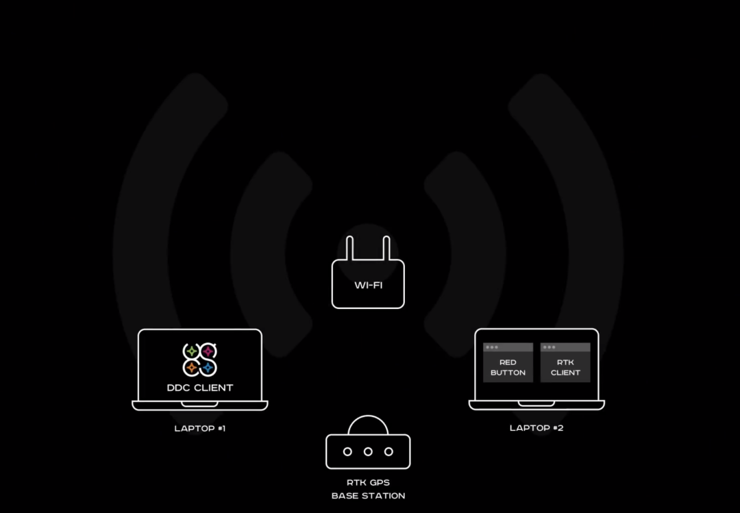 操作人员需要带以下设备到现场:RTK-GPS基站、地面站计算机、WIFI、以及无人机集群。现场部署的第一步通常是测量场地位置并决定朝向,这一过程需要用到高精度的差分GPS基站,从而为无人机集群建立基准坐标系。架设好WIFI后,则需要为每架飞机测试通讯链路来确保链接正常,以及检查电池水平等。