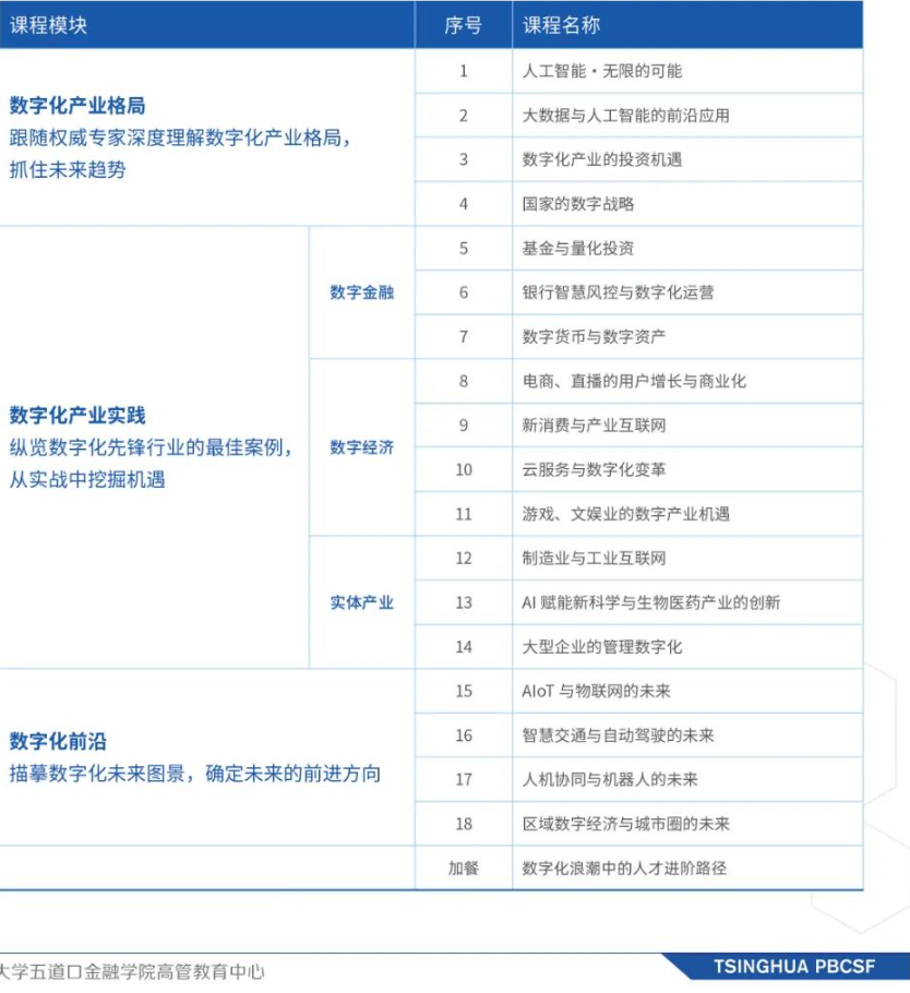 *课程内容和授课教师以实际课程安排为准,清华五道口具有最终解释权利