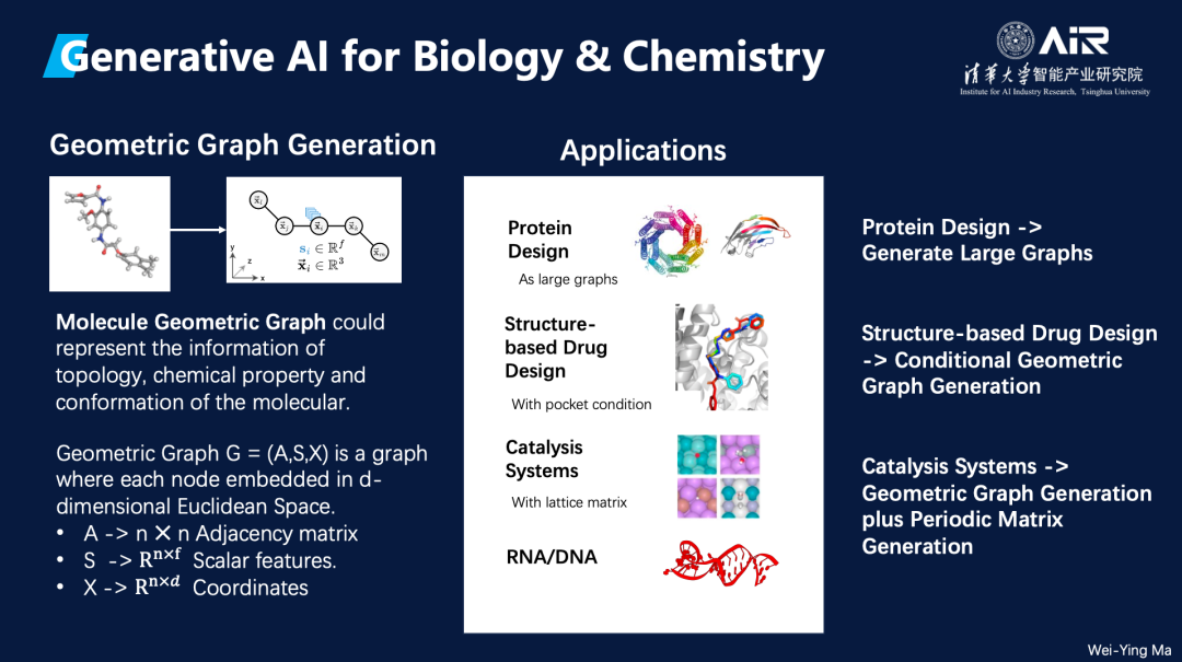 无论是蛋白质设计、基于靶点的药物开发,还是催化剂的研发,这些任务都可以归纳为在不同条件下的几何图生成任务。