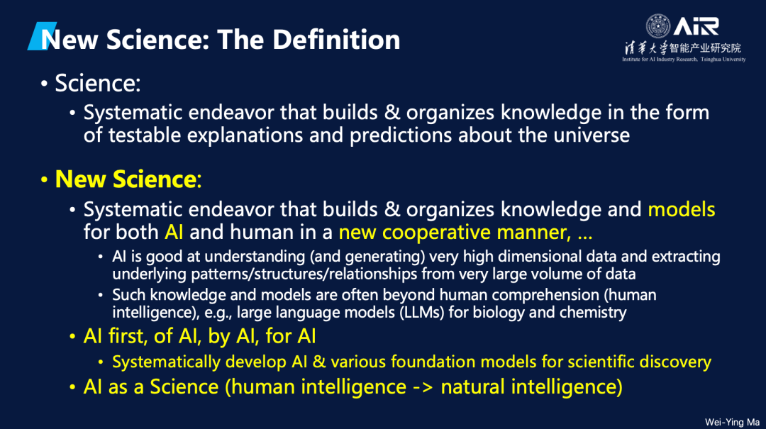 的一部分。随着科学的发展,知识和数据模型的复杂性已远超人类的理解能力,而 分析海量数据并构建复杂模型正是AI最擅长的事情 。因此,“新科学”强调AI将在科学探索中发挥关键作用,与人类共同构建新的科学知识体系。