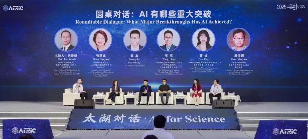 的范式变革”开展超级对话,共同探索AI+发展新未来。随后,三场高水平圆桌论坛相继开展,分别以“AI有哪些重大突破”、“AI for Science”和“AI for Healthcare”为主题,为产学研各界搭建了深度交流的平台。
