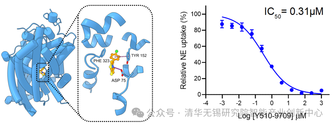 闫创业教授团队合作,在去甲肾上腺素转运体(NET)的临床相关靶点上开展了系列生物实验验证。 NET是抑郁症、注意缺陷多动症以及疼痛等疾病的重要靶点,目前虽然有多款抑制剂已经上市,但在选择性等方面仍然有巨大的优化空间。