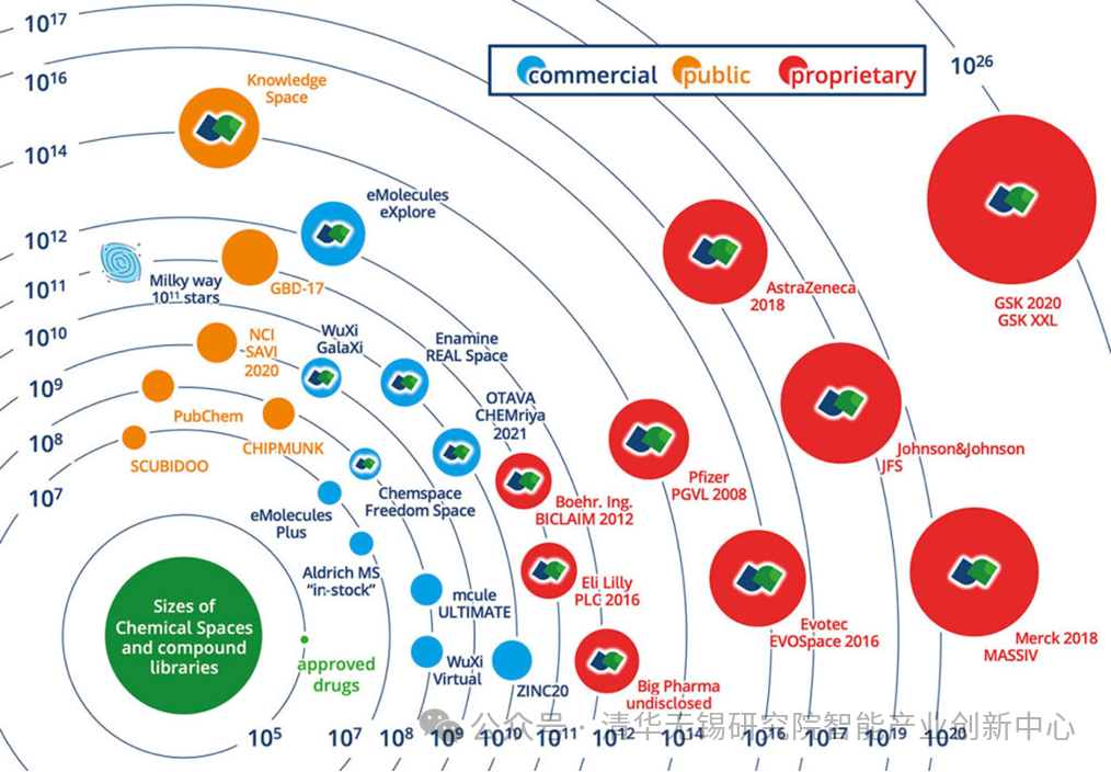 图:化学空间大小示意图(引用:Gastreich, M. BioSolveITDrugSpace2022)