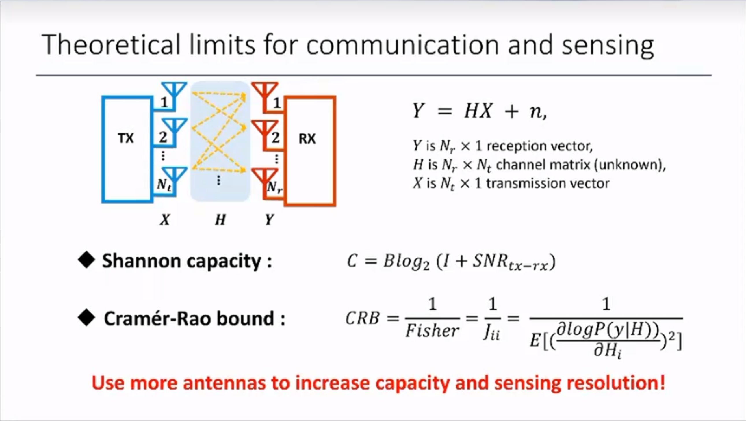 不过,根据香农极限(Shannon capacity)和克拉默-拉奥下界(Cramér-Rao bound),无线通讯与感知的能力是存在理论极限的。已有的工作通过提高发射和接收的天线数,例如使用大规模 MIMO (Multiple-Input Multiple-Output, 多输入多输出)等技术,有效提升了无线传输速率和无线感知的分辨率。但与此同时,更多的天线数量也会显著提升硬件成本、计算开销与功耗,人们希望寻找更低成本、更高效的解决方案。