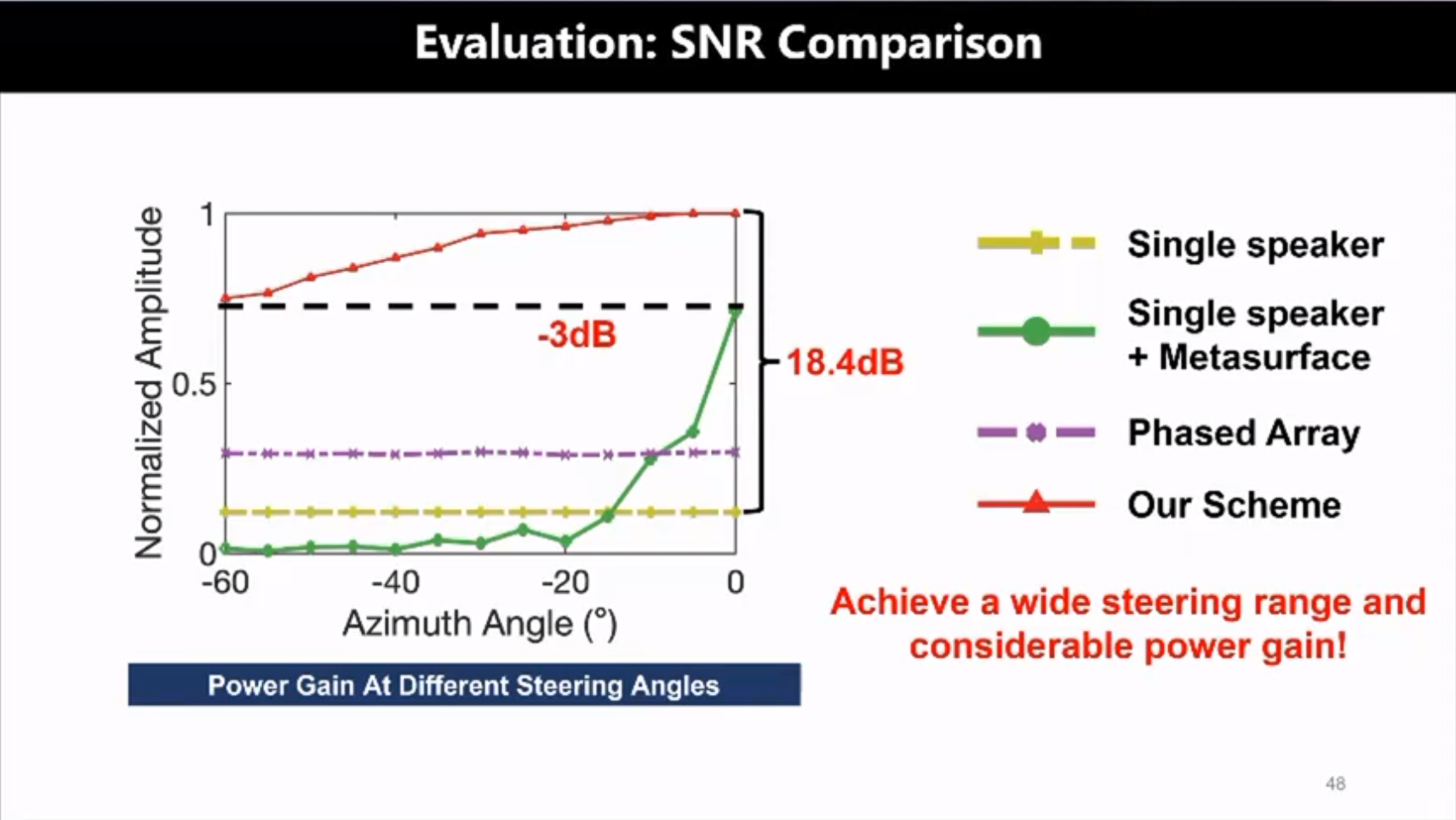 除了上述无源天线阵列组成的超表面外,也有声学超表面,可对声学信号进行处理与增强。声学超表面的机理是通过不同形状的微小隧道在局部产生不同的声音传播延时,从而在宏观上改变声音的传播。不同位置的传播延时分布同样可以建模成一个组合优化问题,从而在不同的应用场景与需求下最优化声音传输效果。而为了解决原有声音信号较弱以及方向动态变化的问题,同样可以组合使用小型的相控阵列与无源超表面,从而在有限的成本与功耗下最大化传输效率和可操作角度范围。