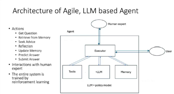 Agent智能体是以大模型为基础,具有记忆功能,并且能够使用各种不同工具,更加智能化。字节跳动团队开发了Agile,学术界首个端到端Agent训练的强化学习框架。具有双层结构,以LLM为核心构建记忆模块和工具模块,用强化学习训练LLM的思维能力,使其生成所需要的特殊命令和动作,让agent具备类似人类的思维结构,能够使用工具、拥有记忆并与人交互。