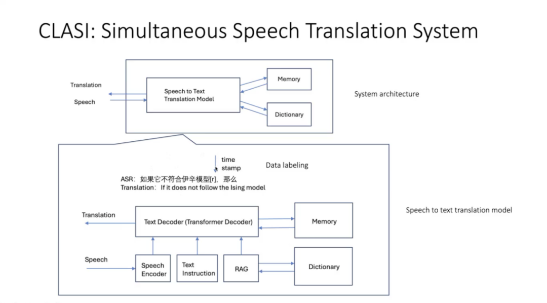 同传翻译是具有挑战的项目,传统的同传翻译是级联系统,先语音识别后翻译,存在语音识别错误和环境干扰大时翻译效果差,以及翻译时间节点难以控制,专业性翻译需要专业材料准备等问题。字节跳动团队将大模型和agent技术结合起来,搭建端到端的语音文本翻译模型CLASI,能有效判断需要翻译的内容和翻译的时间节点,应对环境和噪音的干扰,并且对缺失的内容进行有意义的补全,大幅提升翻译效果。目前,该技术已在字节跳动内部广泛应用,翻译水平接近人类同声传译,未来还将应用于豆包产品。