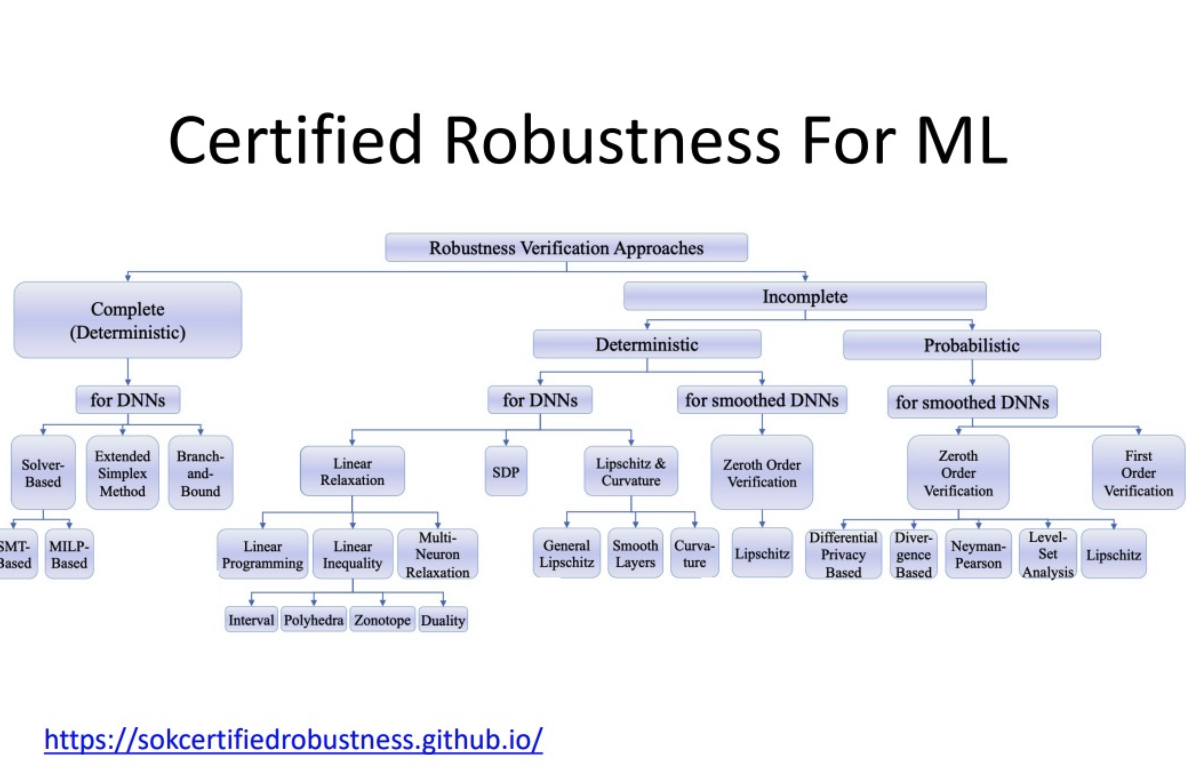 直观来讲,可验证机器学习是为算法提供预测准确率的下界,即在攻击者满足一定限制的前提下,不管使用什么攻击方法,模型的预测精度都不会低于此下界。
