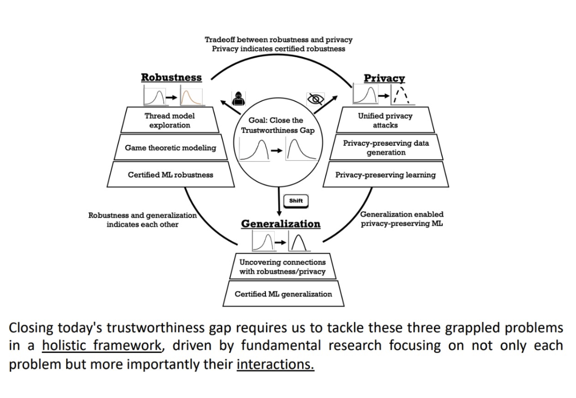 2月23日上午,第16期AIR学术沙龙在线上如期举行。本期活动荣幸地邀请到了伊利诺伊大学厄巴纳-香槟分校计算机科学系李博教授为我们线上作题为《可信机器学习: 机器学习鲁棒性、隐私性、泛化性、及其内在关联》的报告。