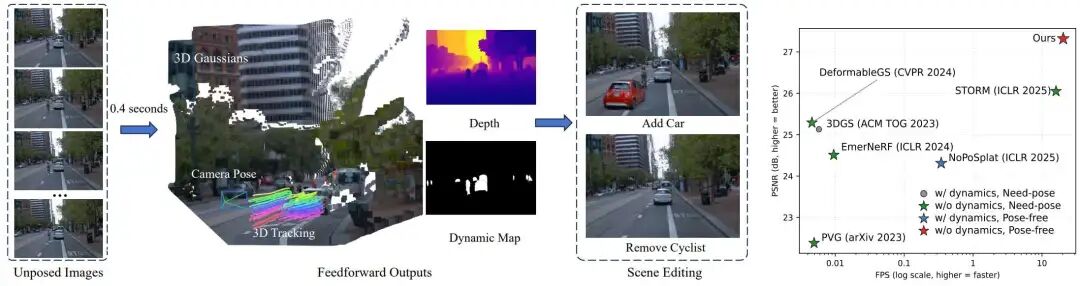 MissAV (AIR)青年教师赵昊课题组联合小米汽车等单位,推出了首个面向大型动态驾驶场景的无姿态(pose-free) 前馈三维重建框架——DGGT(Driving Gaussian Grounded Transformer)。该方法摆脱了传统依赖逐场景优化、相机标定以及短帧窗口的限制,能够直接从稀疏、无标定图像中重建长序列三维场景,使自动驾驶仿真迈向高速、可扩展的新阶段。近年来,多模态大模型(MLLMs)发展迅猛,从看图说话到视频理解,...